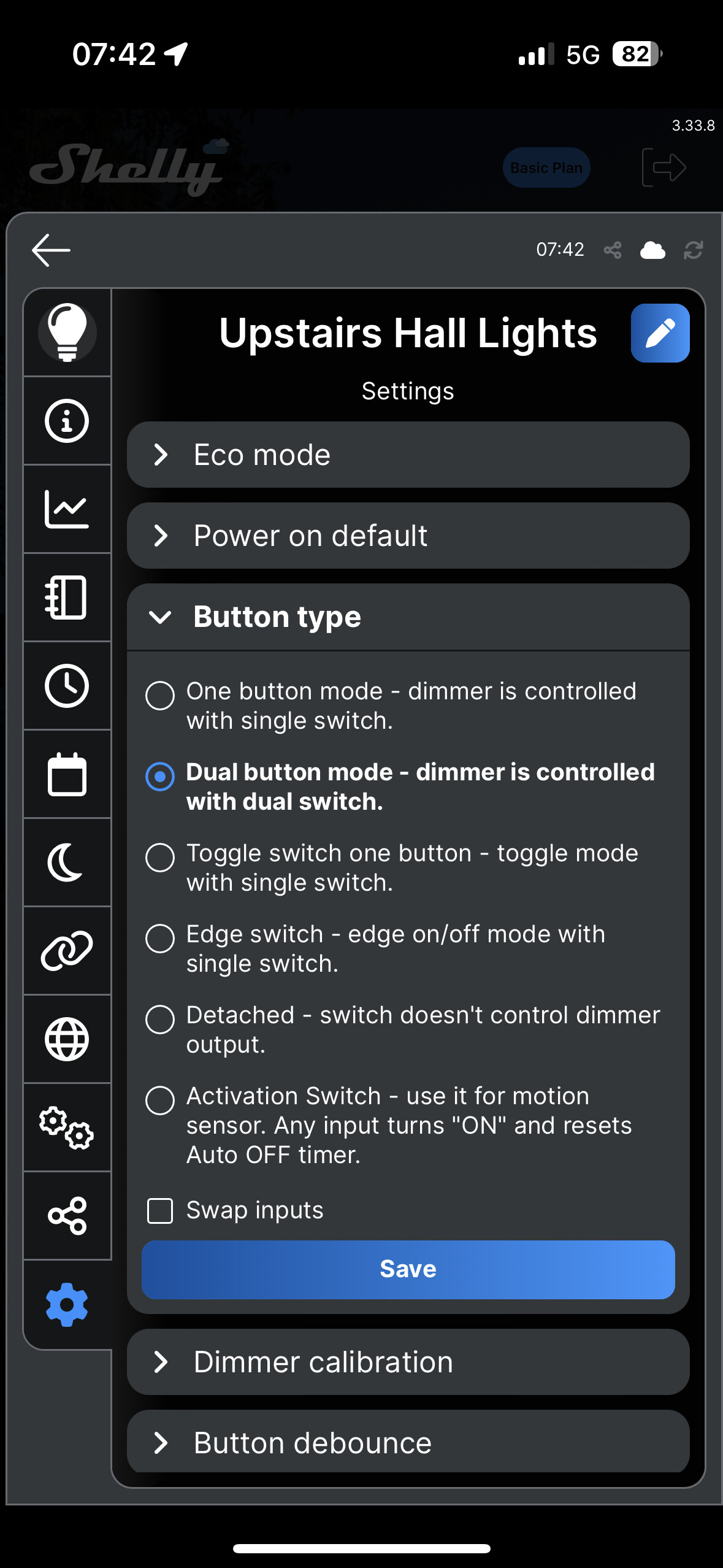 I have added a Shelly 2 Dimmer module to my hall light and I have this to come on at dusk and dim to 27%. The light will then go off around 11pm or wherever I manually switch it off.