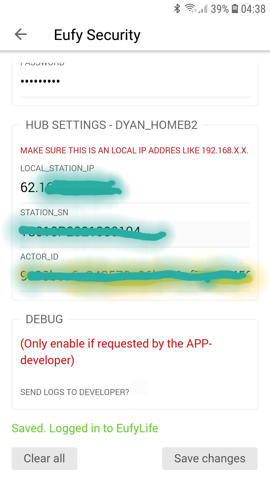Hi, just purchased the Eufy doorbell, the homebase2 and two Cam2 camera. All devices are working fine with the Eufy security application. As I am also using a Homey (model early 2019, using os 720), I installed on the Homey the Eufy security app. I created as recommended a 2nd Eufy admin account and configured the app using the second account. It succesfully login and return the details from the cloud (see picture). I then succesfully added the 4 devices in Homey. The issue I am facing now is that commands from the Homey (like turning the camara on/off) are not seen by Eufy, but also the other way homey is not reacting if the camera or doorbell is creating an event. Restarting the Homey app does not give an improvement. Also changing the global ip to the local 192.168.x.x and rebooting homey is not giving any improvement. Any other advice anyone can give?