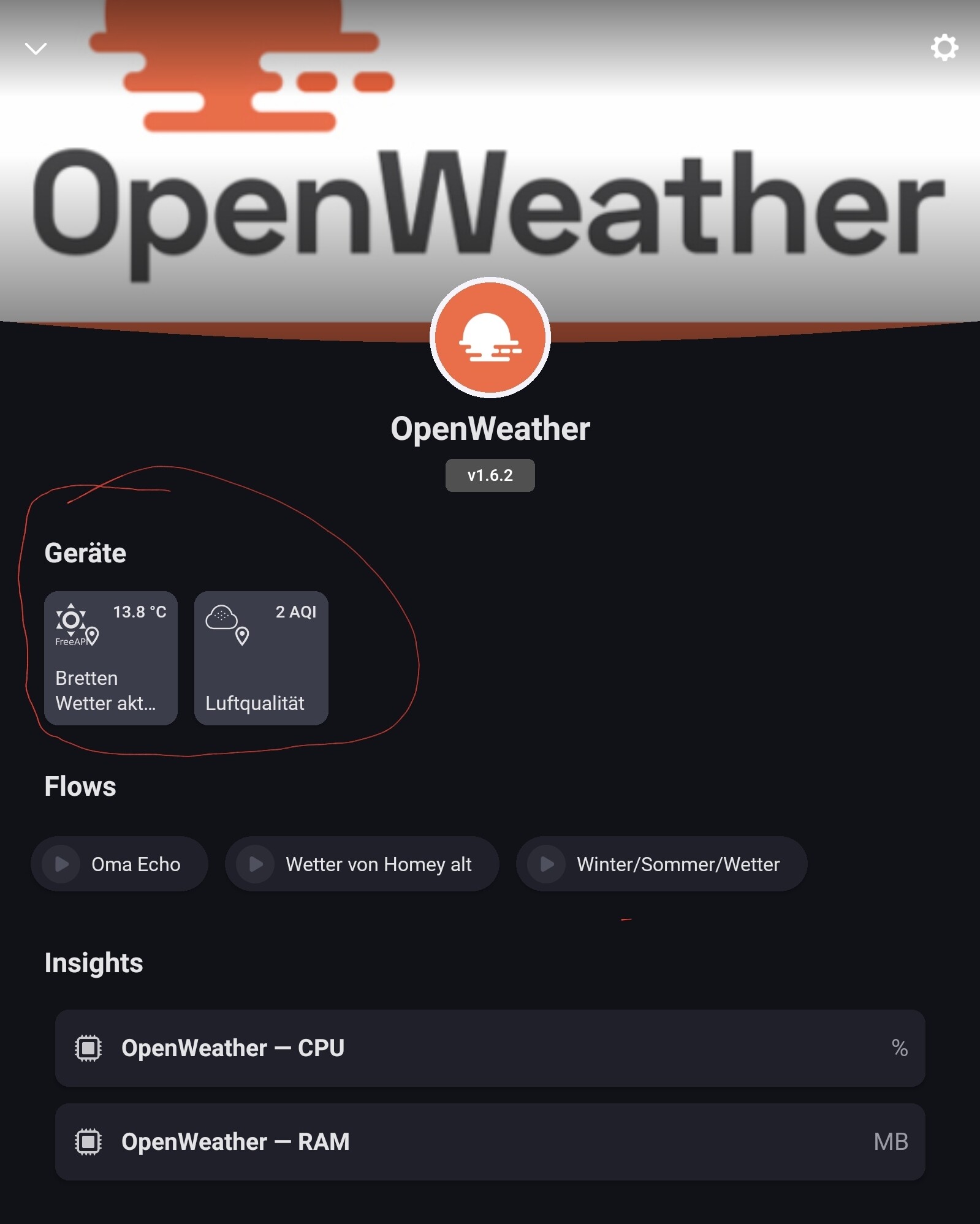 OpenWeather hab ich hinbekommen einzufügen👍 Athom habe ich kontaktiert wegen meinem Problem.