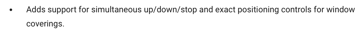 Da man bis zuletzt beide Funktionsarten, also Hoch / Runter / Stopp und den Slider (Setze Position auf x %), laut SDK nicht gleichzeitig in eine Homey App einbauen sollte, da es zu Problemen kommen könnte, und meine bisherigen Fibaro RS 2 und Walli nur den Slider haben bzw. hatten, wundert es mich, dass Du die Funktionen Hoch / Runter / Stopp hast.