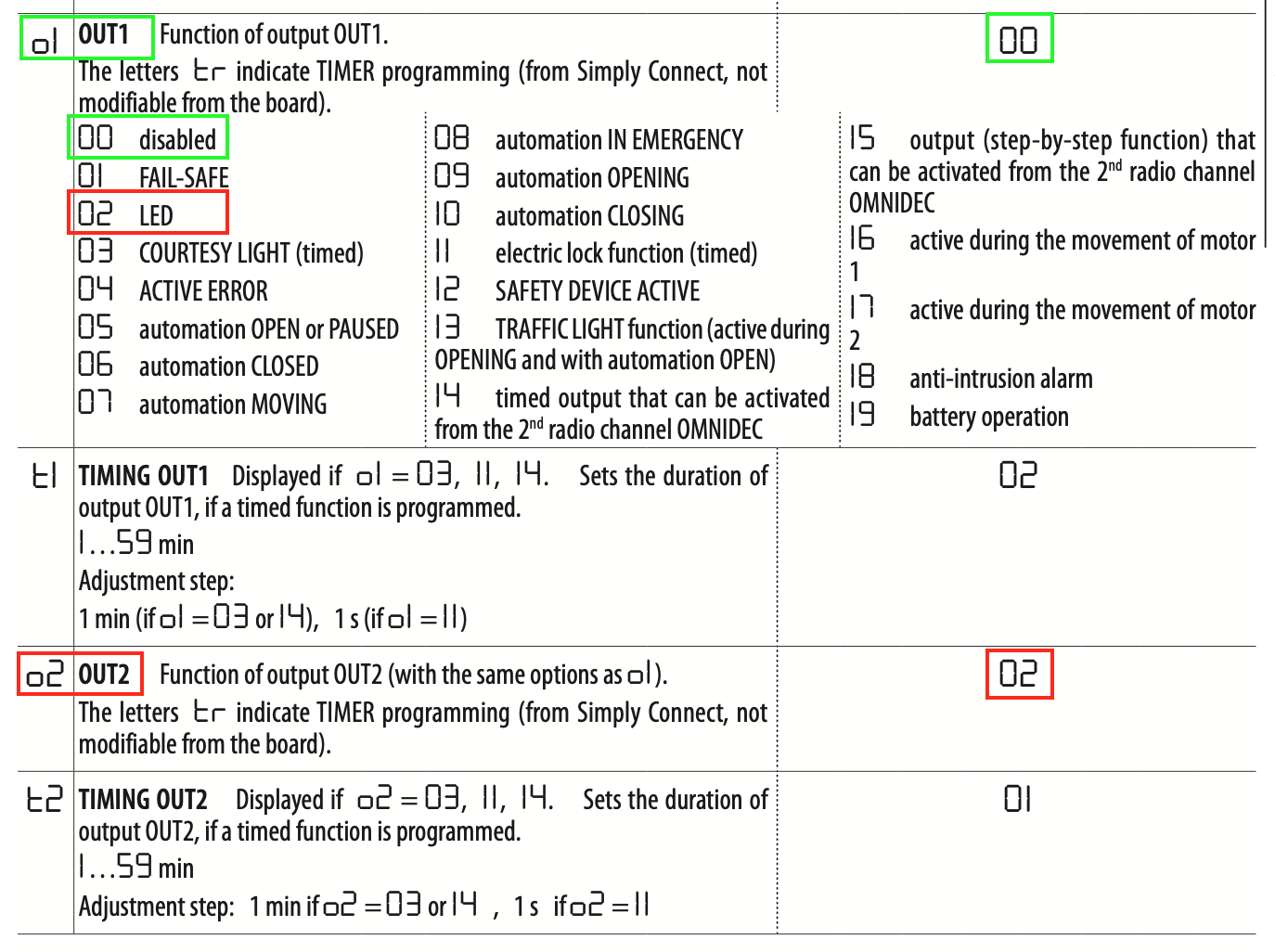 FAAC Board: OUT1 must be set as ALWAYS ACTIVE (default)