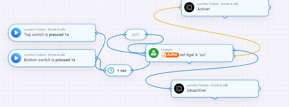 Est il possible de transformer ces boutons en mode bouton poussoir. C’est à dire : si j’appuie que le bouton haut et que la lumière est activé, je l’éteins.