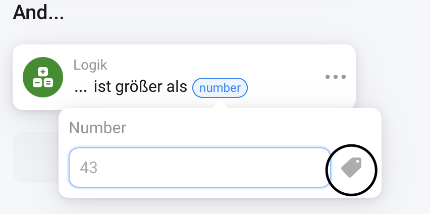 Im Beispiel ist “Temp Outside” der Wert eines Sensors. Die Tags findest du, wenn du hinten auf das kleine Fähnchen klickst. Da kannst du dir dann deinen Sensor auswählen.