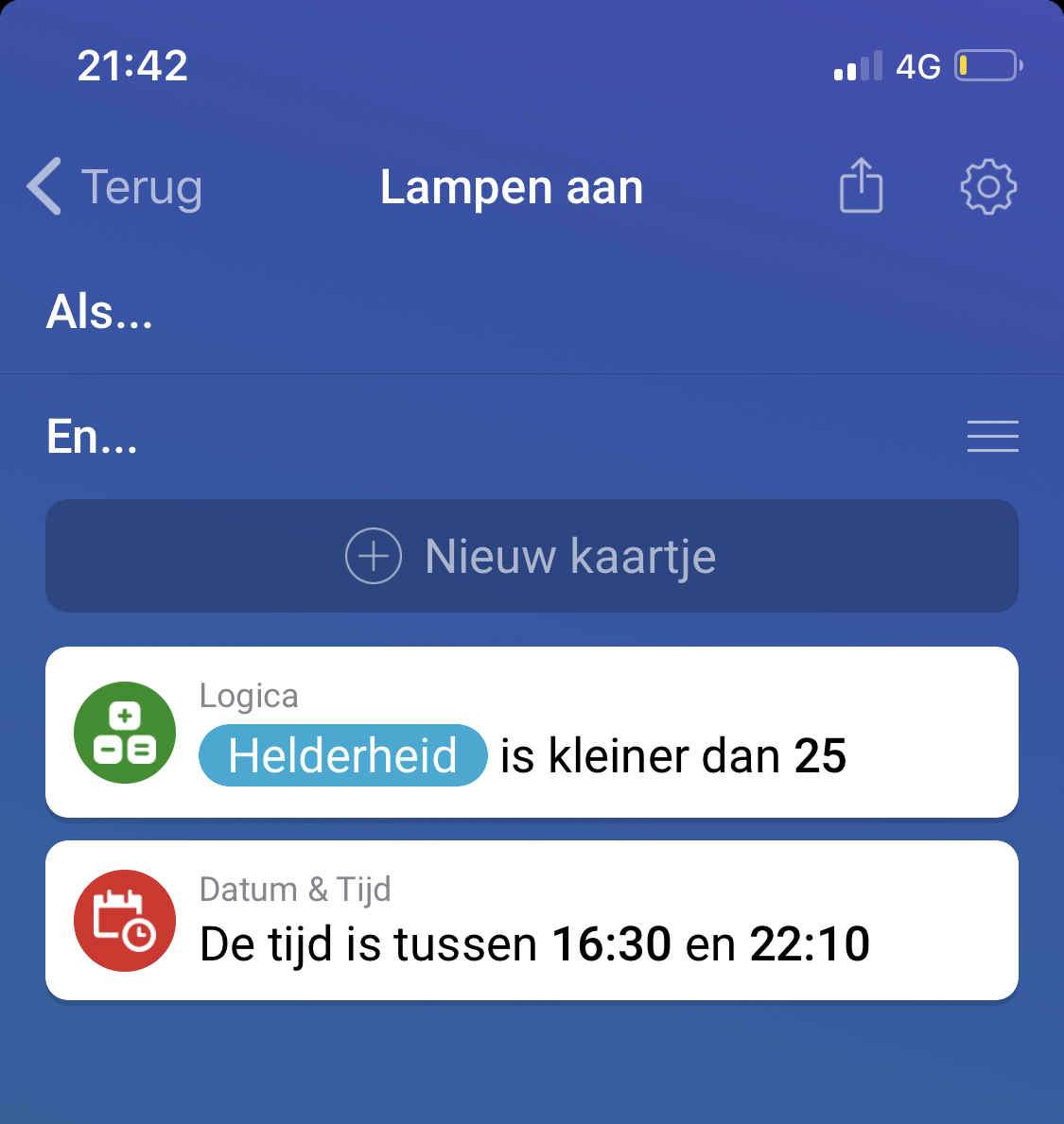 Blijf ik het het vreemd vinden dat een soortgelijke flow buiten altijd gewoon werkt. Waarschijnlijk komt dit doordat de lux al lang nul is voordat de tijdvoorwaarde inkomt.