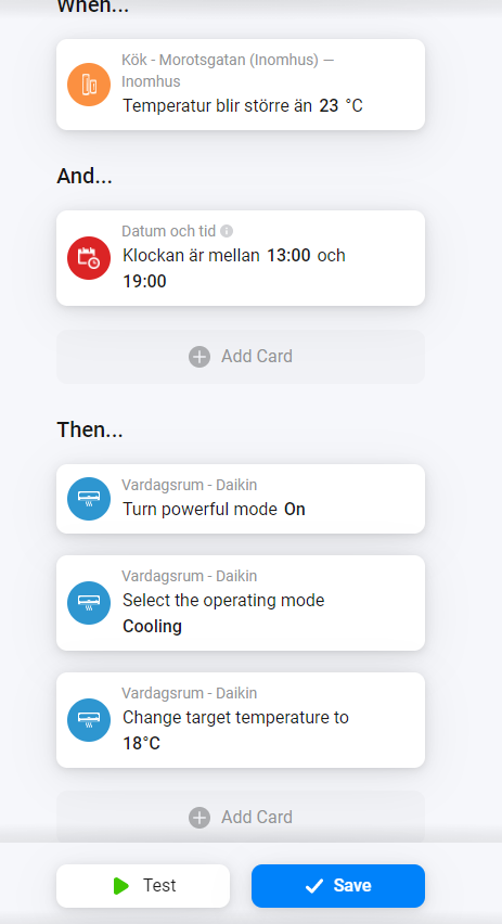 I want my Daikin to power on and set to cooling when the degress on my Netamo is more than 23.