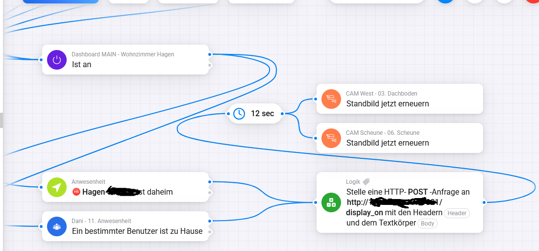Habe ich vergessen dazu zu schreiben: die Kameras haben je eine Kachel auf meinem Dashboard und da hätte ich es gerne, dass bei bestimmten Ereignissen die Bilder der Kameras aktualisiert werden. Leider gibt es bei dem von Homey angebotenen Dashboard keine Möglichkeit sich Push-Nachrichten anzeigen zu lassen. Zur Zeit lasse ich über einen Flow die Schnappschüsse aktualisieren, leider wird der aktualisierte Schnappschuss nicht auf dem Dashboard angezeigt, sondern ein Bild von irgendwann. Der Versand über Push aufs Handy funktioniert ohne Probleme.