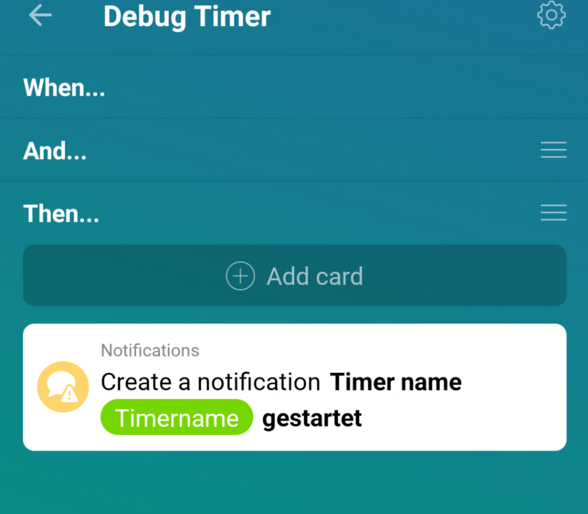 Ok thanks, I need some time to test this, cause the countdown timer don’t work for me. I did some very simple stuff (when: timer has started, then: send notification) but that wasn’t fired at all. So I need an alternative app for countdown timers