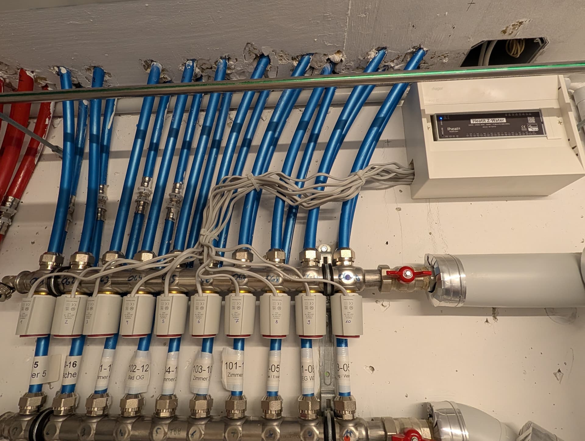 Der Elektriker hat mir die Controller montiert und falsch mit den Stellantrieben verkabelt (trotz genauer Anleitung…) → die habe ich dann selber noch richtig angeschlossen. Empfehle ich alles vom Elektriker zu machen! Ich hatte einfach keine Geduld bzw. musst ich nur noch die N Leitungen korrekt anschliessen… Achtung 230 V!!!