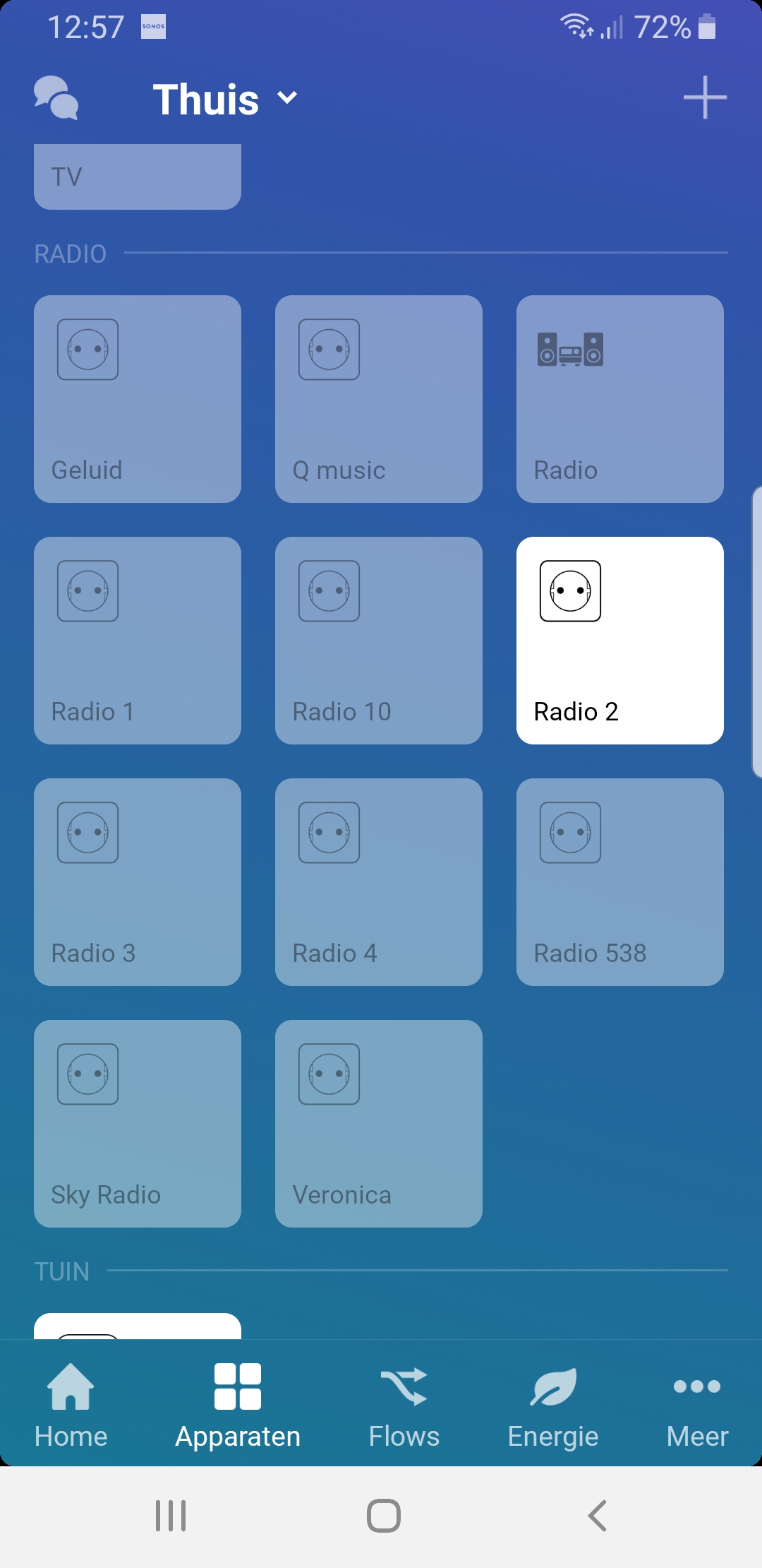 Als ik Radio 2 aanzet zet de flow Radio 2 aan en schakelt de beide schakelaars om.
