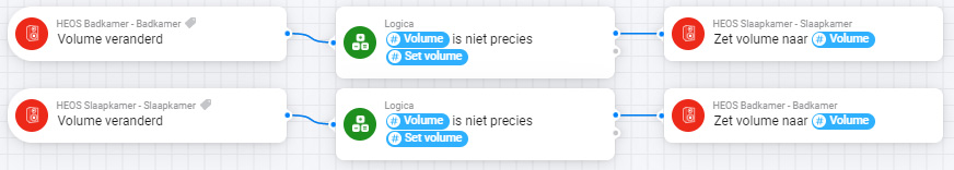 Als ik twee simpele flows maak dat wanneer bij de een het volume veranderd hij het volume van de ander aanpast en visa versa dan gaat het niet goed en komt hij in een soort loop.