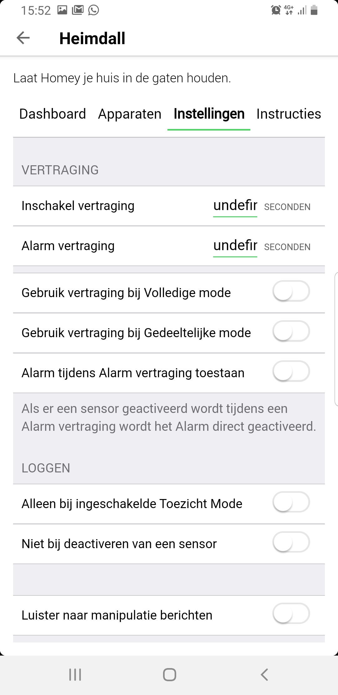 Hmm that doesn’t look good, looks like settings aren’t read properly from Homey’s storage. It doesn’t show the zones on the Status page, but more importantly, the Delays are undefined.