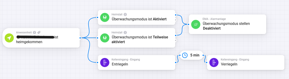 I have a flow that automatically disables the burglar alarm system when a certain person comes home > Image Flow 1