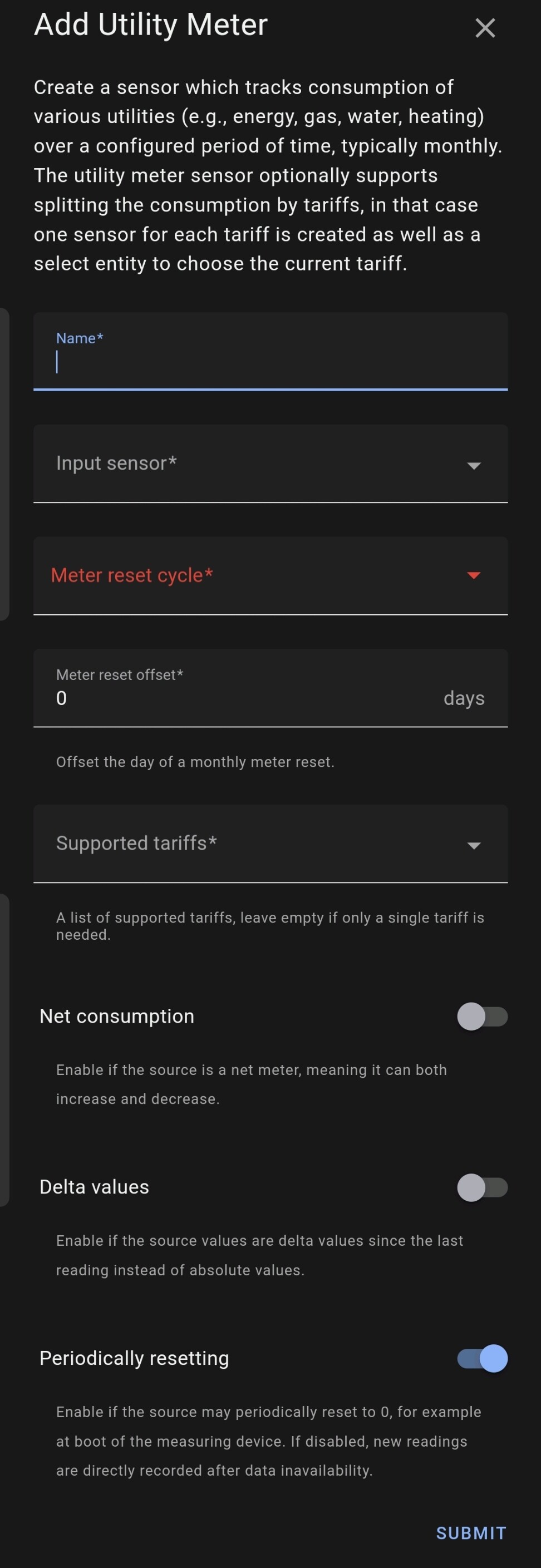 Ich habe eine „Helfer“ verwendet und „Utility Meter“ eingegeben.