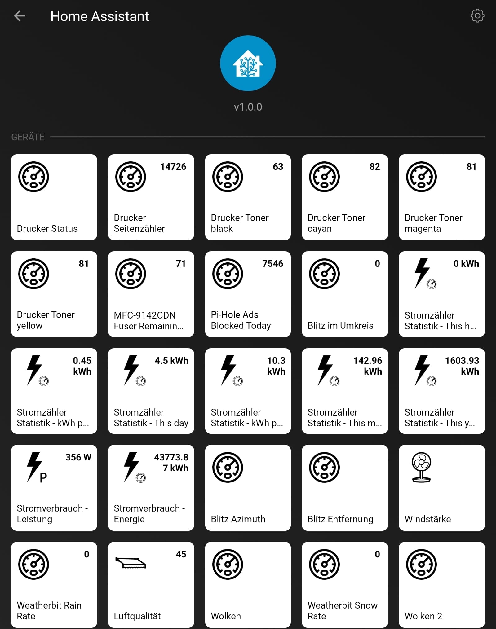 Das Dashboard läuft entweder im KioskBrowser auf dem Tablet in der Küche oder in der HA-App auf dem Telefon.