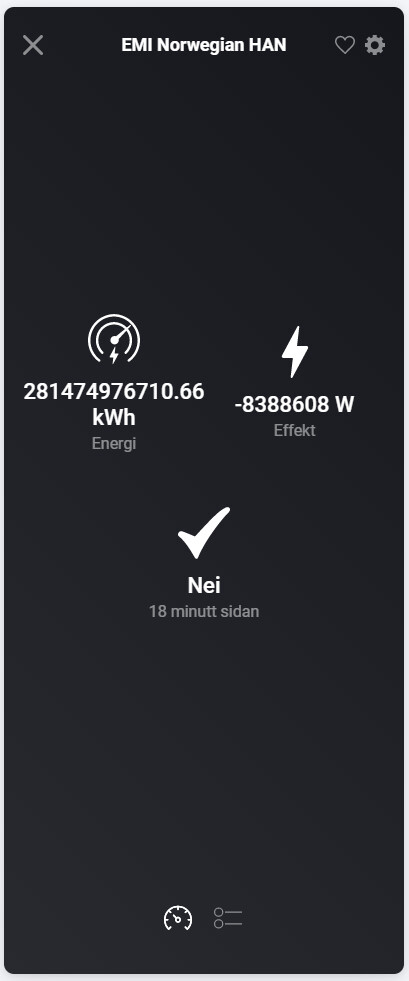 Hei. Ser korrekt ut, kva er det som ikkje virkar? Du har tilgjengleg brukt “Energi” (total) og noverande forbruk “Effekt”. Avkryssing som står “nei” er eg usikker kva betyr, slik er det med meg også, men fungerer fint saman med Homey pro. Ser du har negativt “-” teikn på effekt, det har ikkje eg.