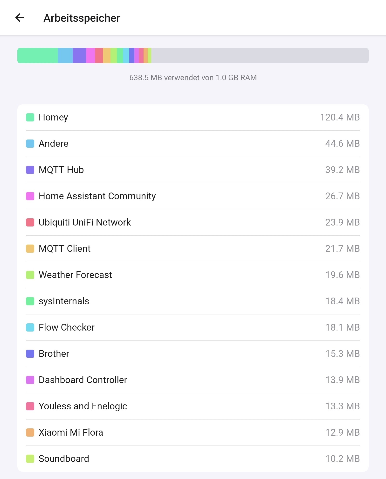 Ich hab schon mit mehreren Leuten diskutiert, aber niemand wusste, was das ist und vor allem, wie man diese anderen Geräte wieder los wird. Bei der originalen Homey RAM Größe, kann das zum Problem werden, da Homey mindestens 20% freies RAM benötigt, um störungsfrei zu funktionieren.