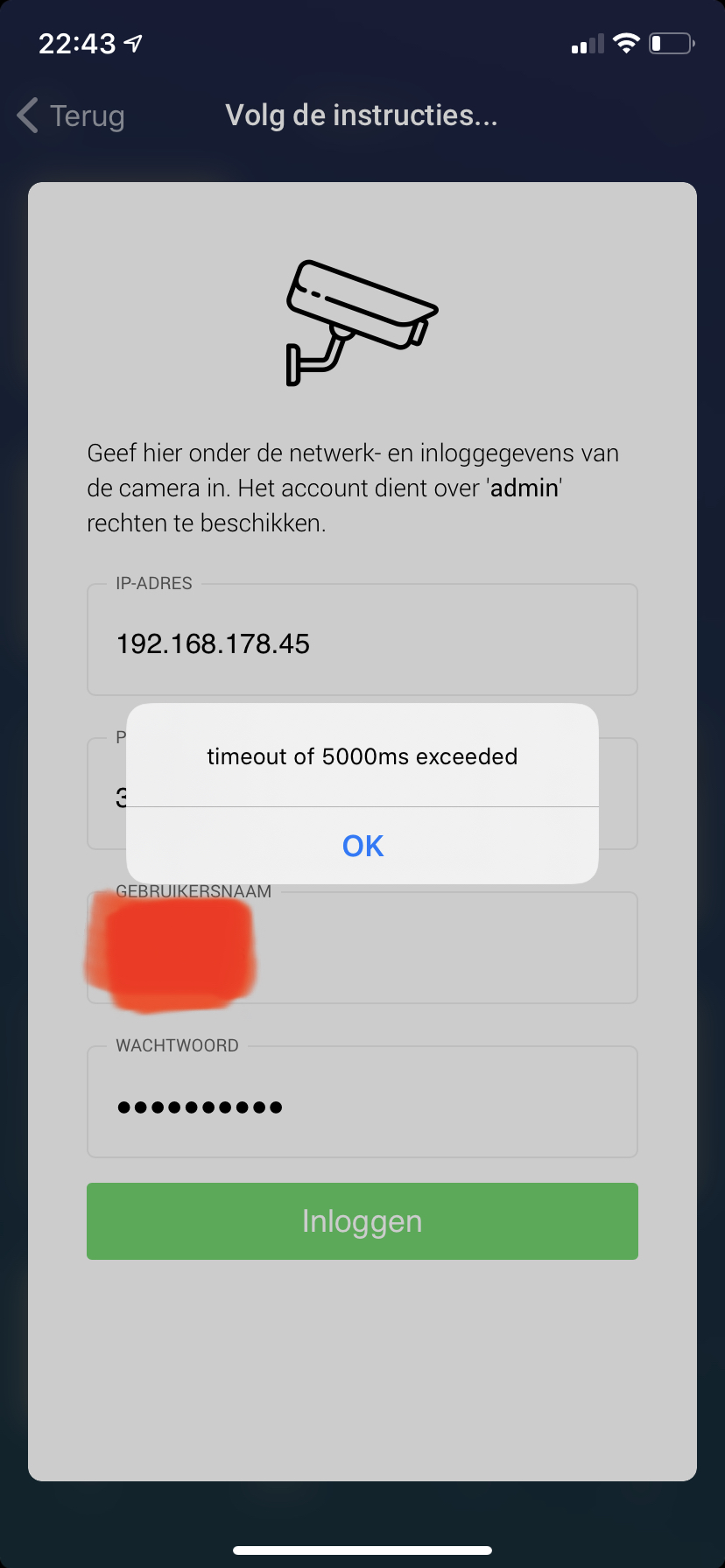 Ik heb het ook geprobeerd via een app als bij Foscam, waarbij hij het volgende aangeeft: