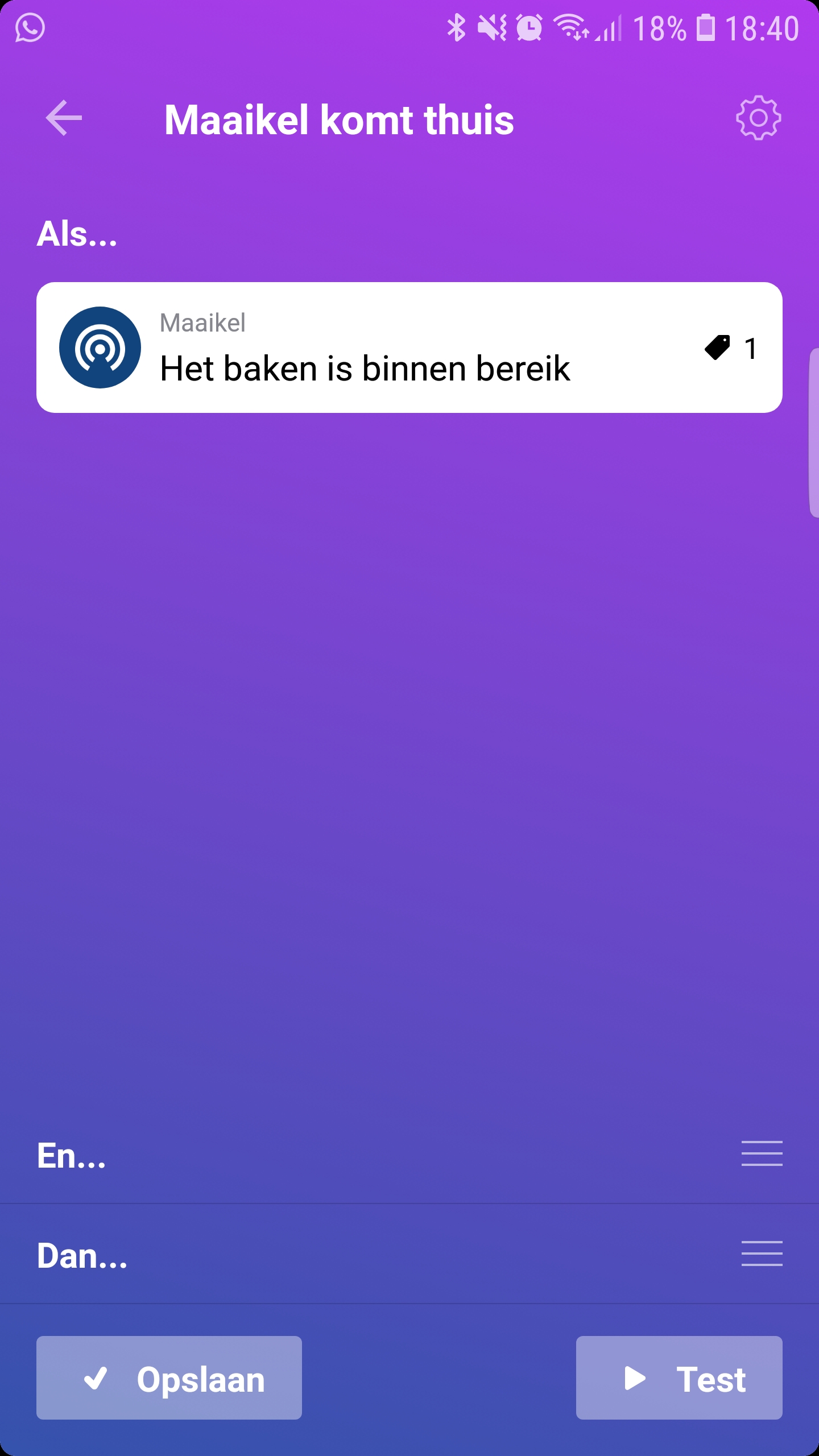 Ik heb inderdaad dezelfde instellingen als jij liet zien. Maar ik heb nu iets geprobeerd. Ik had namelijk in een flow de beacon detectie alleen bij “als” staan (beacon1 is binnen bereik)
