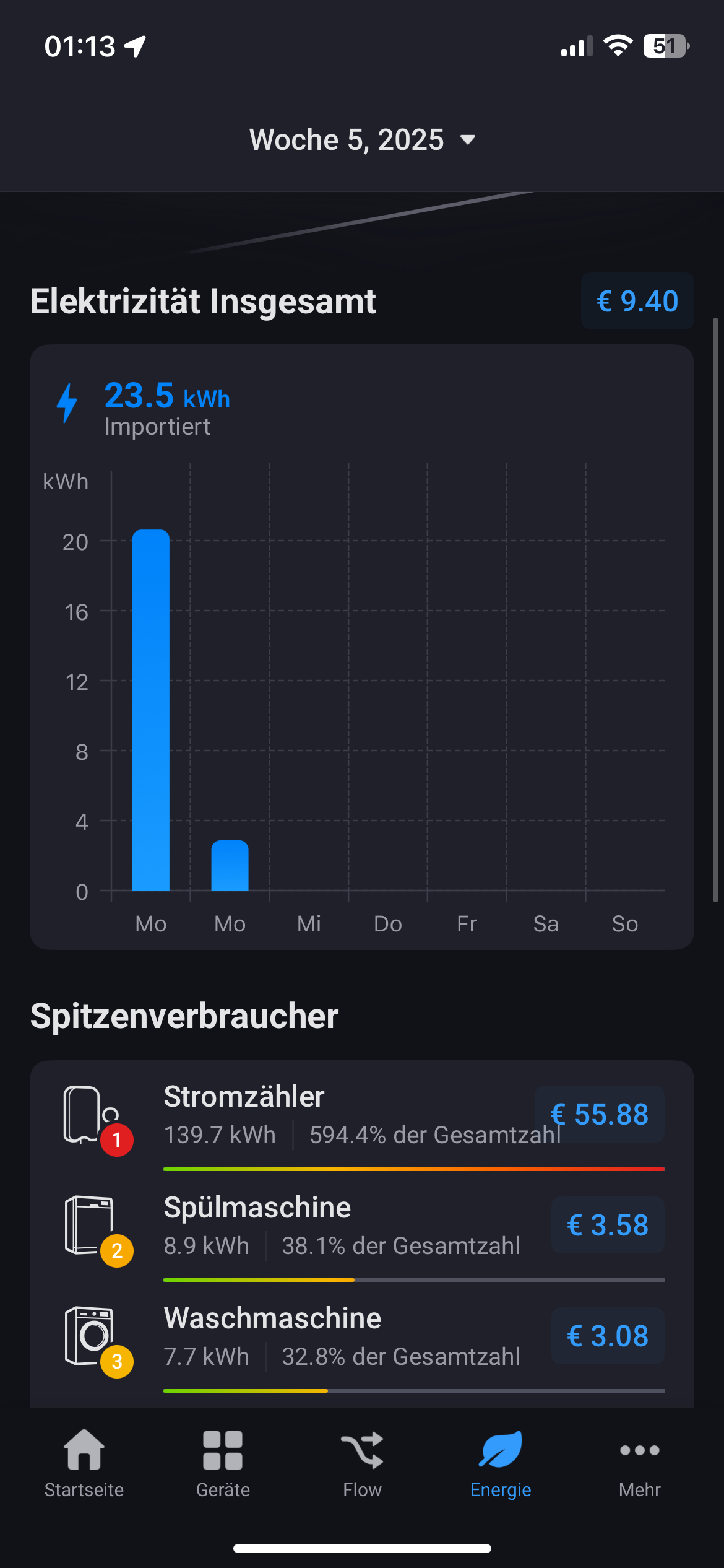 Homey Energy is still Beta, which means that problems can still occur. So I suggest to contact the support. Maybe they need a HP23 diagnostic report for further investigations.