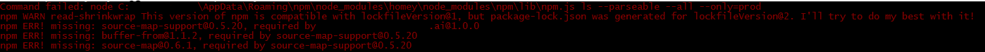 Athom’s CLI tool wil per se dat npm@6 geïnstalleerd is, terwijl de meest recente versie npm@7 is: