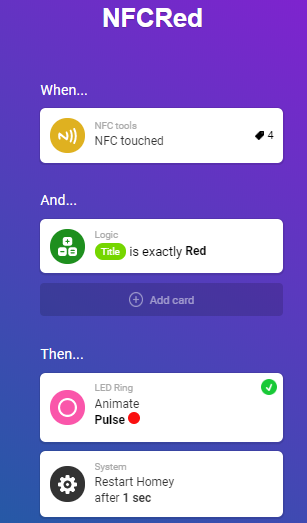 I did some tests and I can inform you that both cards donât trigger anything. The only thing it does is flash the LED ring (red) voor a sec or so.