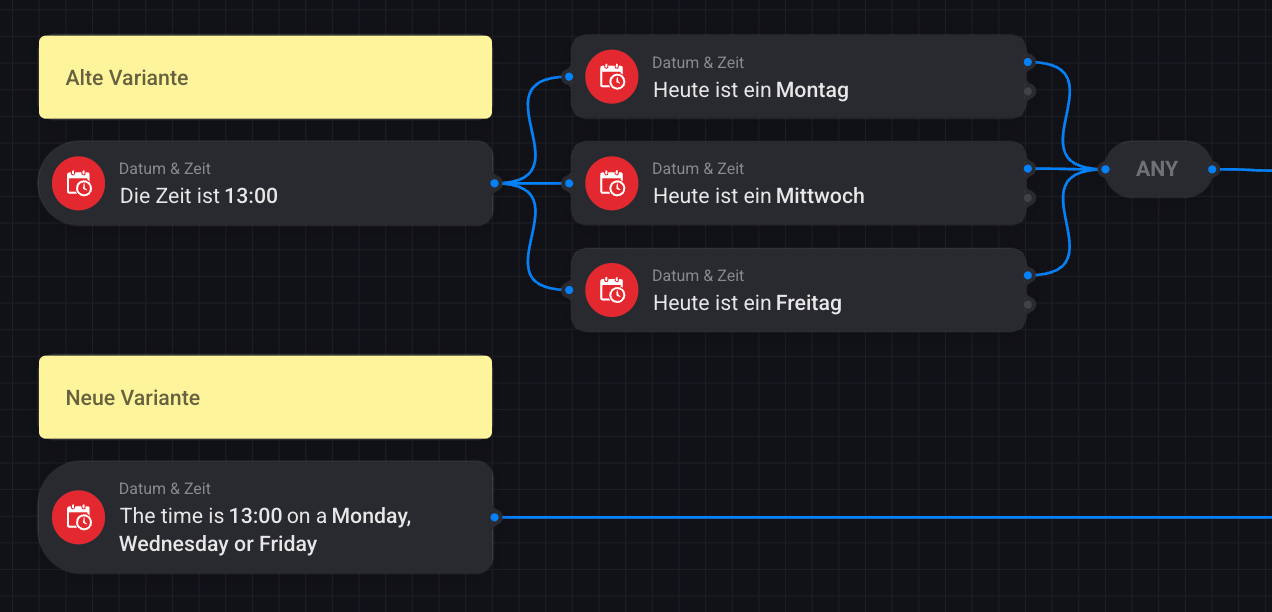 Auch mit diesen Karten ist es möglich die Anzahl an Flow-Karten und Flows zum Teil deutlich zu reduzieren. Beispiel mit einem AF: