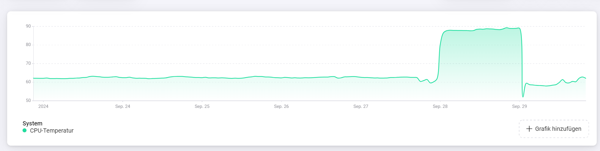 In the insights i have seen that the CPU Temperature was going up to 90 degrees for nearly one day. CPU clock was going down to 0,6 Ghz