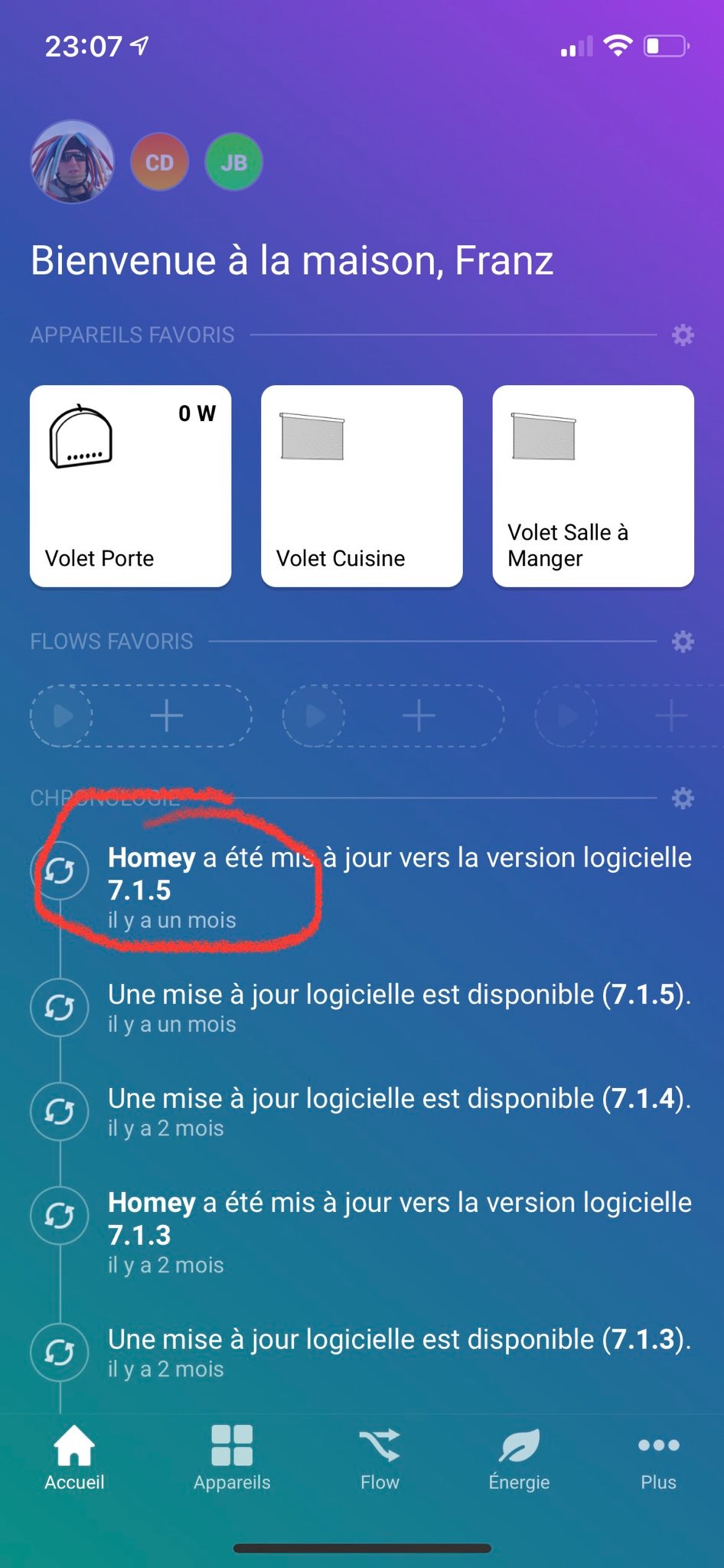 I restored a backup done with the previous version of Homey Pro 7.1.5 and … and finally it works.