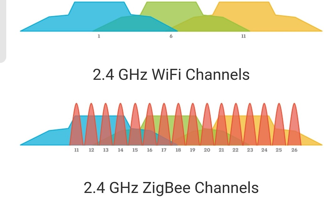 as you can see, zigbee and wifi channel numbers differ, and are not in the same band.