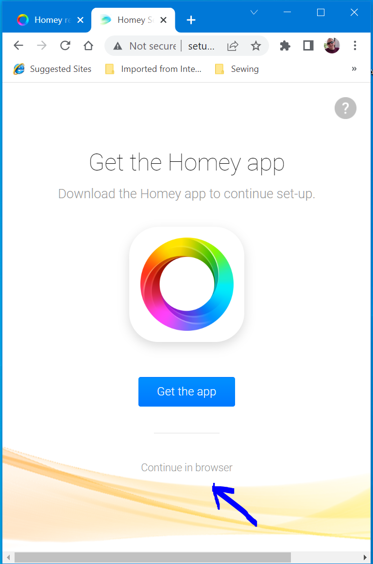 There no questions in the. It tells me to connect to the HomeySetup-xxxxxx network. When i do so it tells me to go to setup.athom.com. The website pops up a javascript error the says “unknown error”. Then i can select language. I select english and then i’m told to download the app.