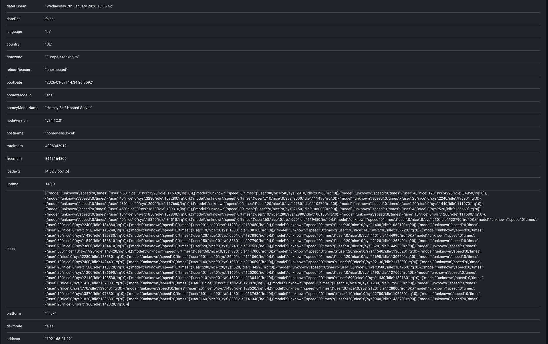 Here you go, a big file with all logging on Homey Self Hosted Server