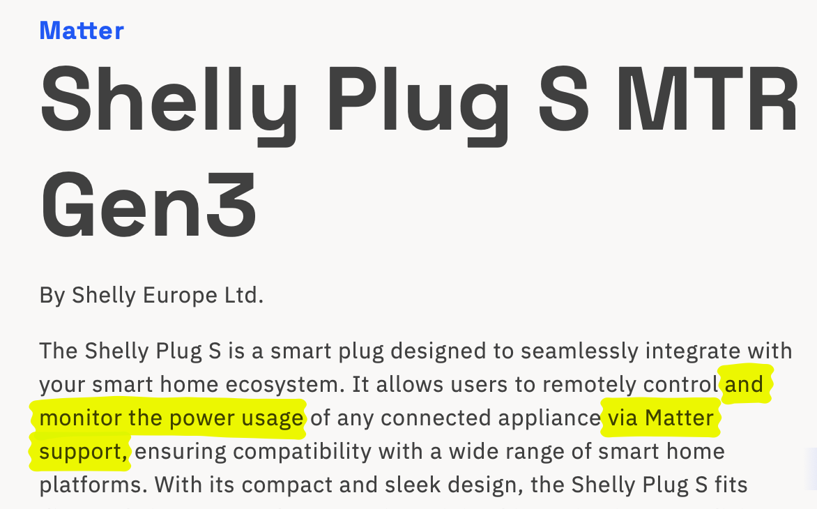 Meine aktuelle Einstellung zu Matter ist ehrlich gesagt auch noch etwas zwiegespalten. Vielleicht weil ich mit meinem Shelly Plug S Gen3 ja eher negative Erfahrungen gemacht habe, was die Leistungsmessung betrifft.