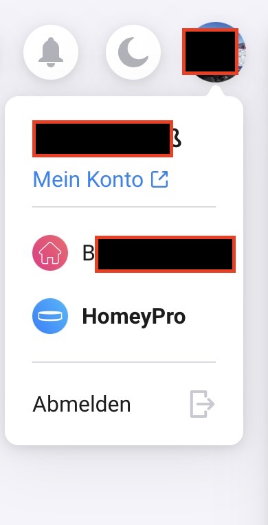Dabei ist mir in den Kontoeinstellungen aufgefallen (siehe Bild rosa Haus Symbol) dass ich früher mal die Homey App benutzt habe und mir zum testen und anschauen diese mal installiert habe und schon mal bisschen ausprobiert habe.