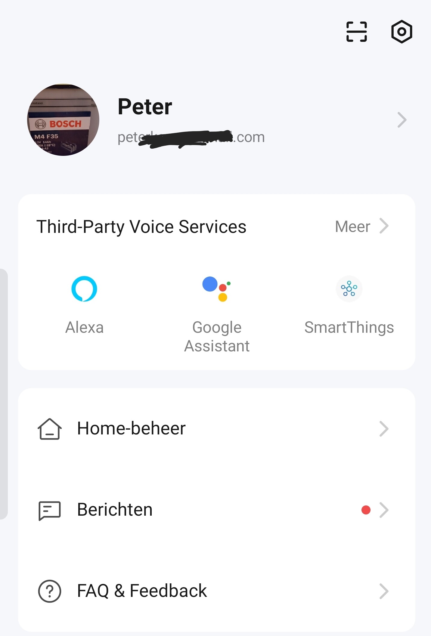 Dit is het account / email adres van mijn Tuya mobiele app.