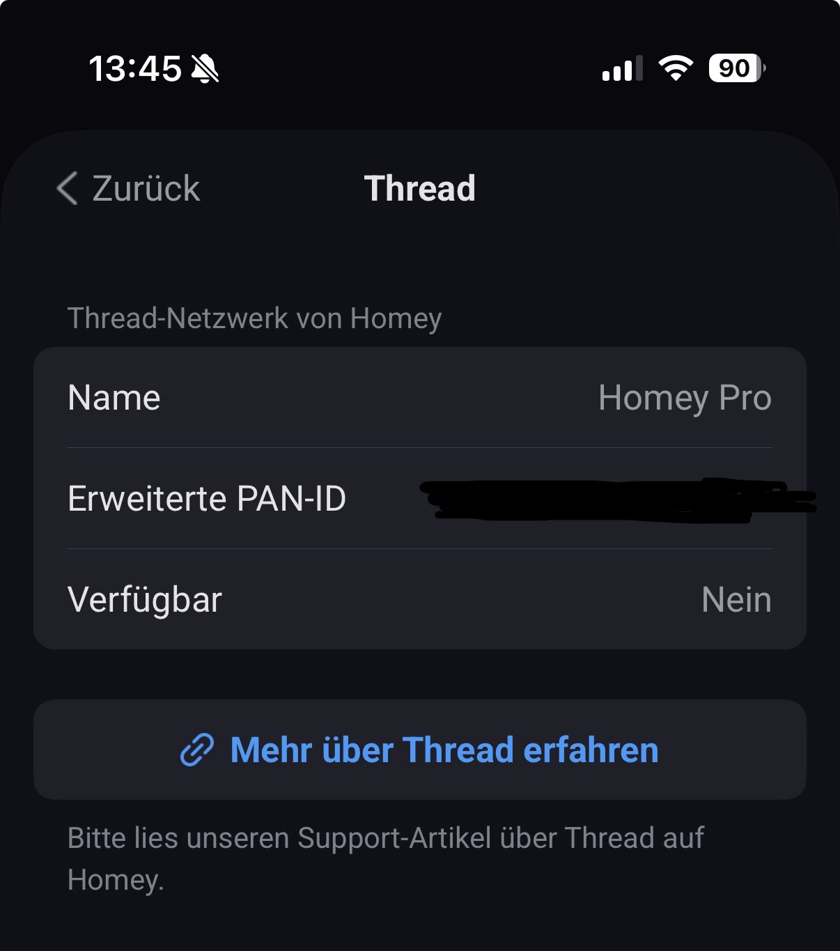 I have noticed today that my Home Pro is reporting ‘Your thread network was reset by Apple Home’ - Now I’m fairly sure it was working. I do have 2 x homepods and 2 x Apple TV 4ks but I have never setup a thread network on any of those devices. I have a couple of thread devices which were setup in HomeyPro and seem to be working fine. In the homeypro thread details screen it shows the thread network name but shows available as No.