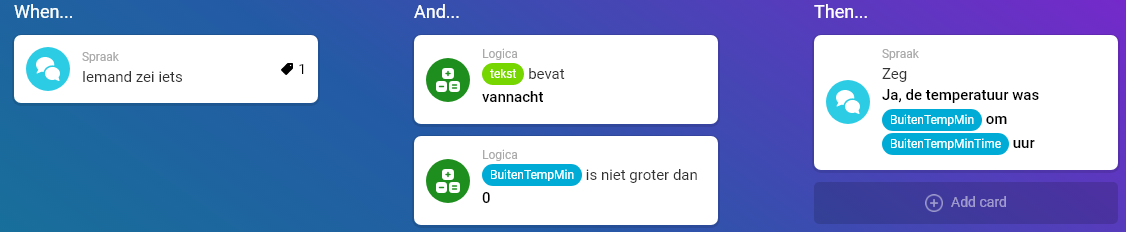 Now we can also make some flows (With the use of the tags) like asking if it was below 0 last night and get the answer with yes but also with the minimum temp AND the time it was that low: