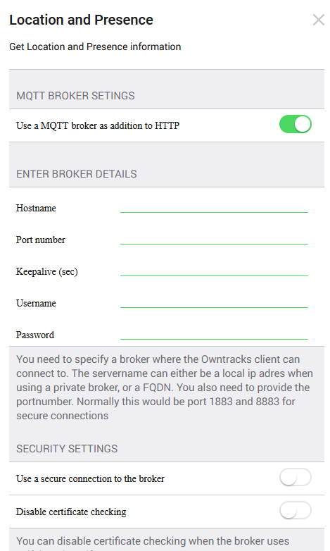 Hello everyone, I’m currently trying to connect homey to OWN Tracks according to the instructions or to initially connect correctly according to these instructions (at the top). But I can’t seem to get it to work with http. For Hostname I enter this generated code and my user ID. but what goes into the other fields?