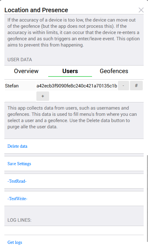 1st question: My wife gets notified, when i enter the geofence defined by me. I have made a flow thats an exact copy of “me”, except its me who should be notified, when she enters the same geofence (as seen and listed in the LAP homey app) I just dont get any notification. Does that mean i cant use the same geofence created in owntracks on my phone, for my wife, and that she should make her “own” geofence, with same location as me, in her owntrack app? (btw, both our phones are android, and owntrack is set to “signifcant changes”, allowed to “always tracking”, not forced to sleep, etc, etc.