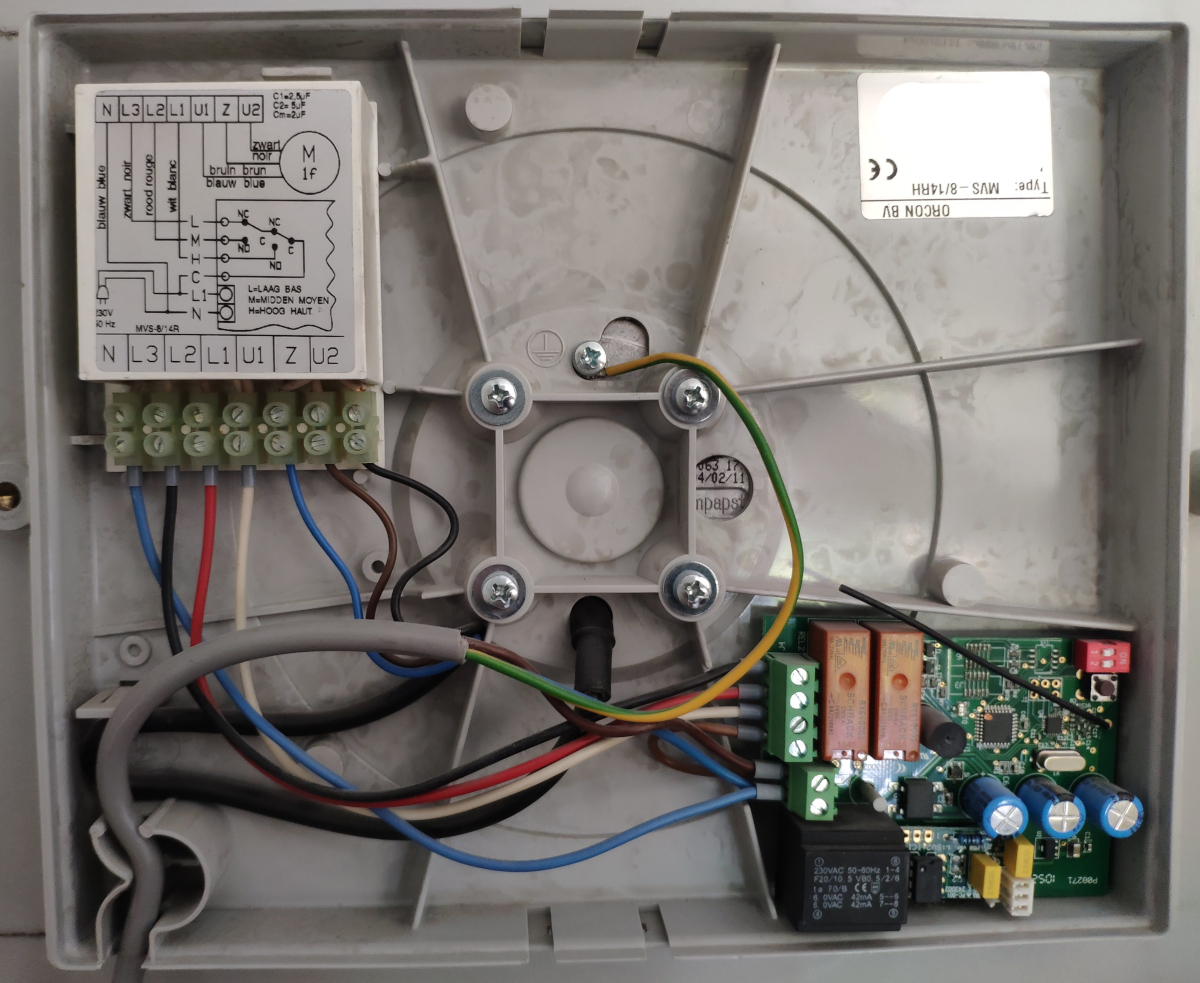 Deze is niet zo eenvoudig als de vorige, hier loopt de stroom naar de ventilator direct door de besturingsdraden, en er mogen blijkbaar geen twee ingangen gelijktijdig aangestuurd worden.