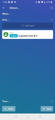 The “and value is greater than 0.1” is for the else part to work, otherwise you’ll have trouble actually turning the light completely off.