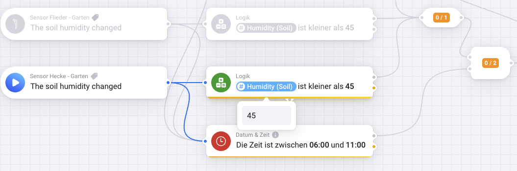 Wie erstelle ich aber einen Flow, wenn die Bodenfeuchte um 07.00 Uhr bereits unter 45 Prozent ist?