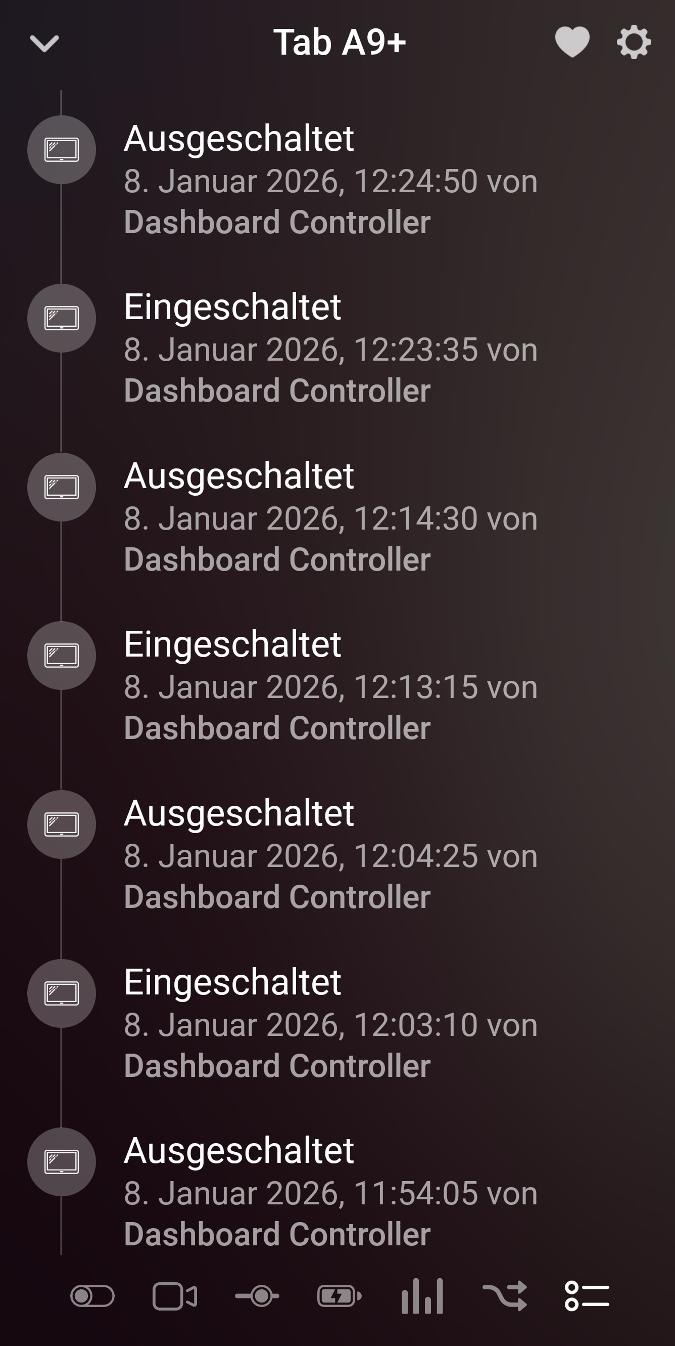 Hallo, es ist kein Beinbruch und ich kann damit gut leben, aber mich würde schon interessieren, warum das Tablet genau alle 9 Minuten durch den Dashboard Controller angeschaltet wird.