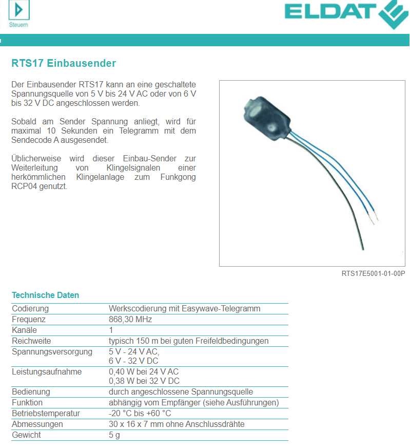 Meine simple Idee war einen Minisender zwischen den Gong zu schalten. Hierzu habe ich folgenden Sender gefunden, der jedoch ein propritäres Protokoll zu verwenden scheint. Kennt jemand eine Alternative (8-24V AC), die mit Homey funktioniert?