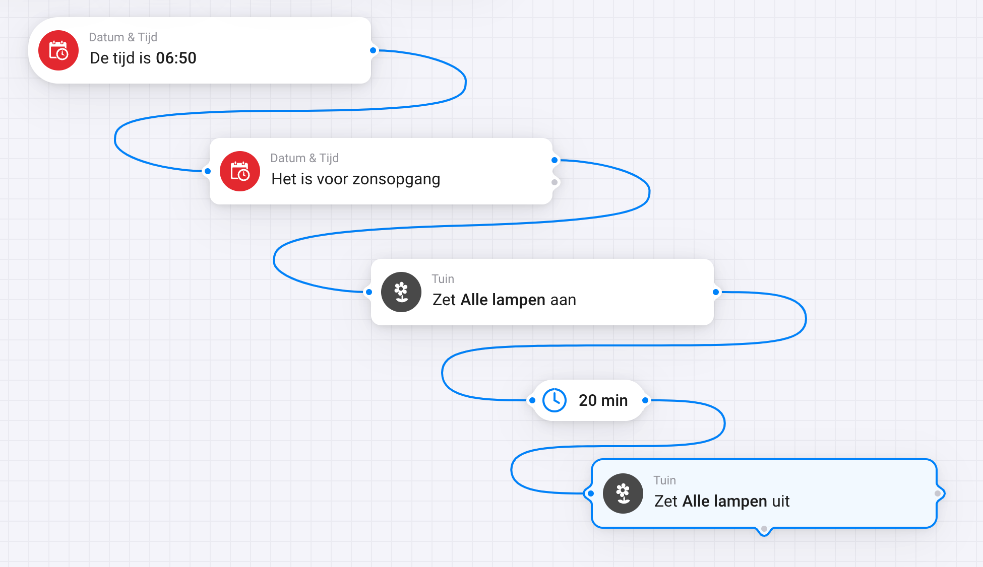 ik wil graag de tuinverlichting aan tussen 6:50 en 7:10 als het donker is