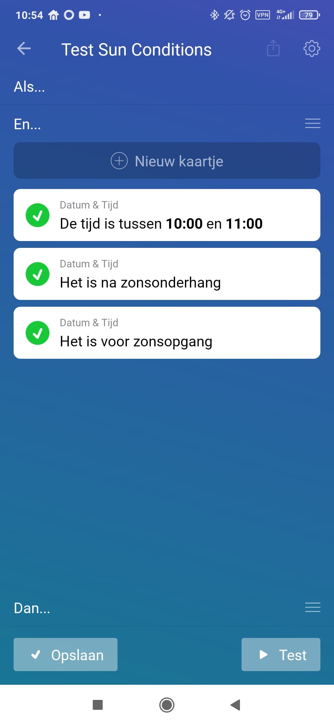Try testing the flow now (after sunset), check if the condition is marked with a green checkmark. If so, flip the condition, so it checks ‘after sunset’.
