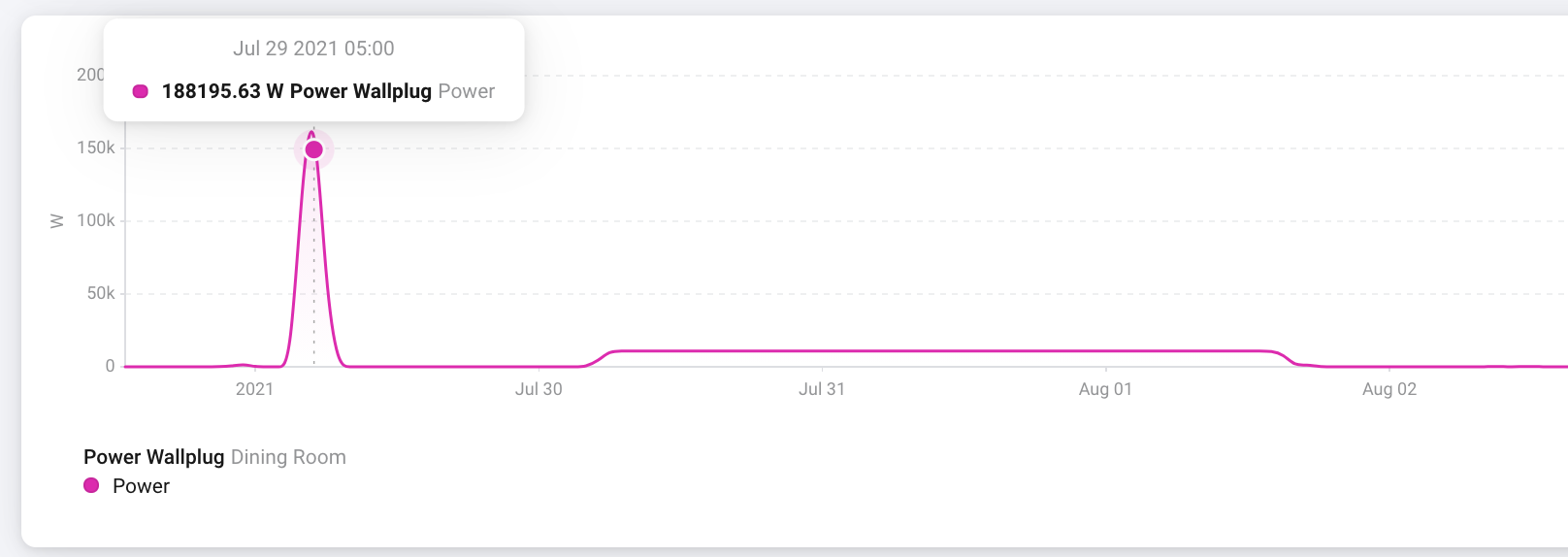 The normal power usage on this socket is 2000W very occasionally. Homey Insights regularly shows numbers that are way off, both for power usage and for power meter.