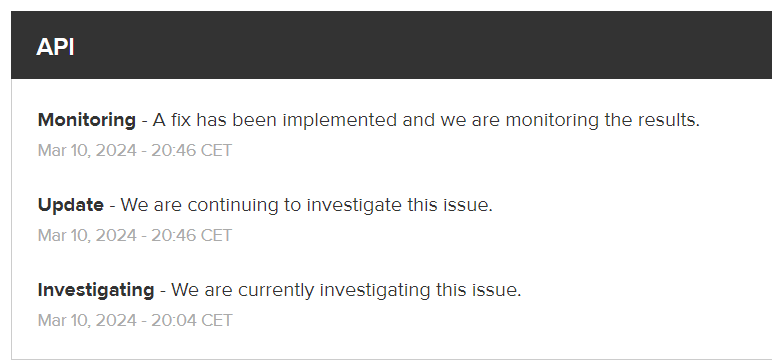 Except the status on https://status.homey.app/ also working again for me.