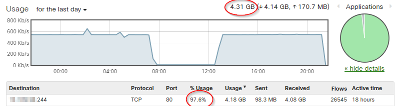 Philips Hue app is pulling the Hue Bridge every 5 seconds. Super bad way of doing stuff, but probably the only way if push isn’t supported. It is consuming over 4GB of data. Fortunately, it’s only local. But it’s a big chunk of data.