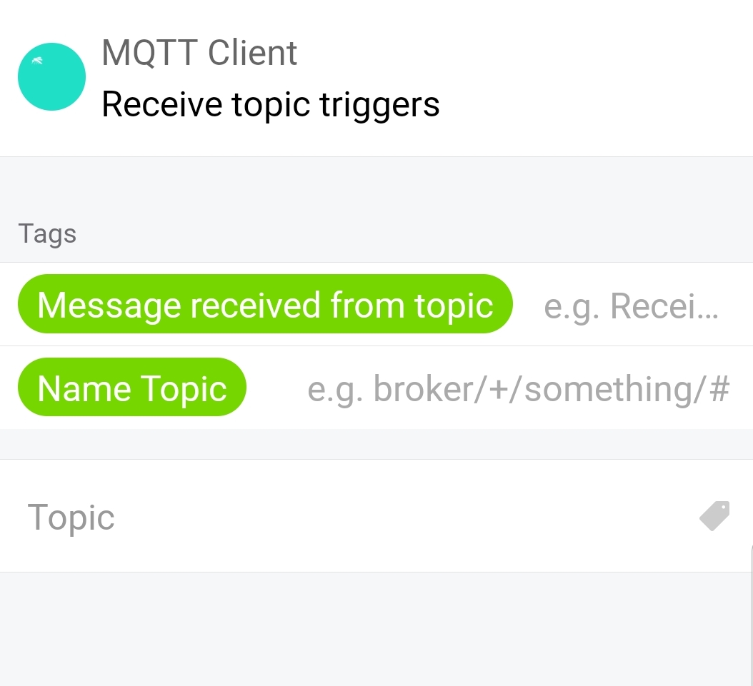 I see the tag ‘Message received from topic’ & ‘Name Topic’ but the text to the right is cut off from the screen (I’ve tried rotating to no avail). What is the correct format to use? Must tags be used or can I get the D1 to send out any particular message that the client will recognise & trigger on?