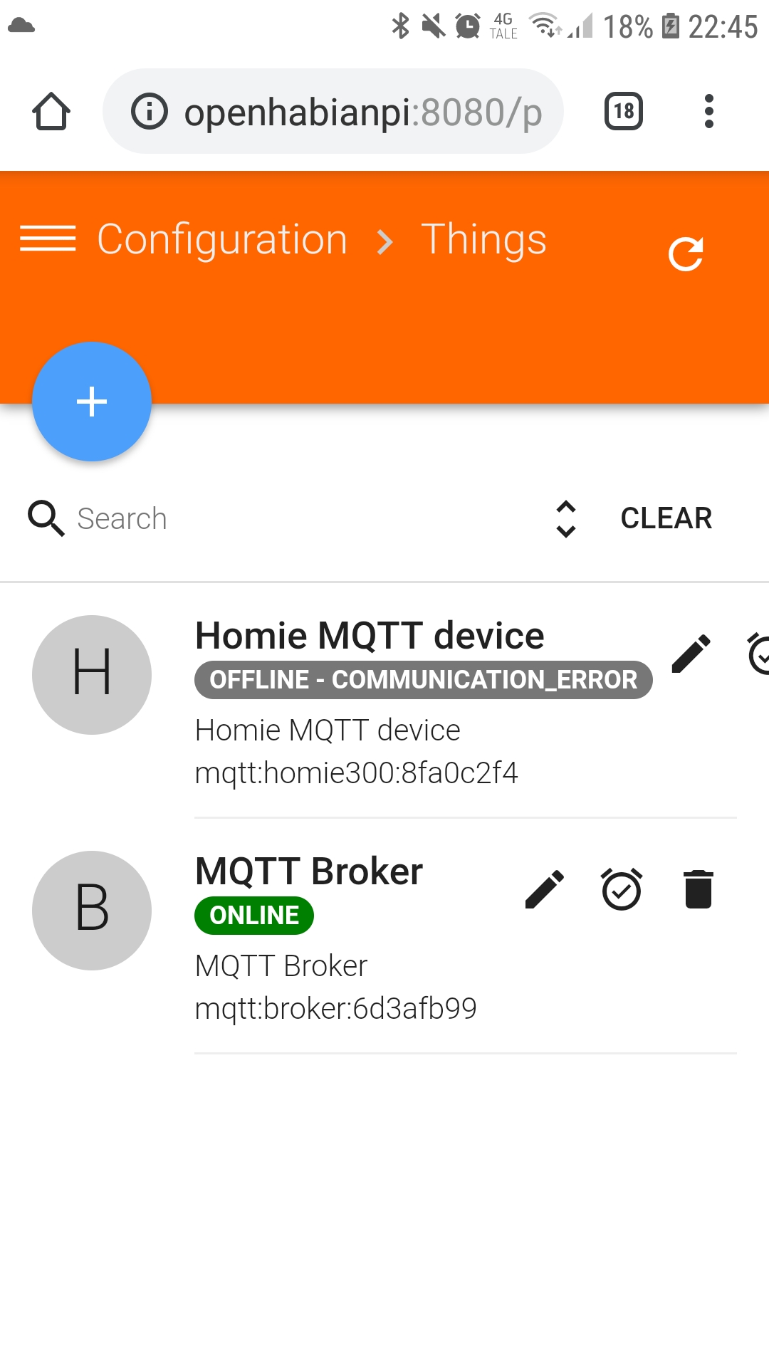 I have it online in OpenHAB and see channels when I click on the “Homie MQTT device”
